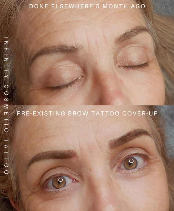 At Infinity Cosmetics Tattoo we have the experience and are clinically successful in eyebrow cosmetic tattoo coverup procedures, with the best treatment method for all colour correction and individual skin characteristics.